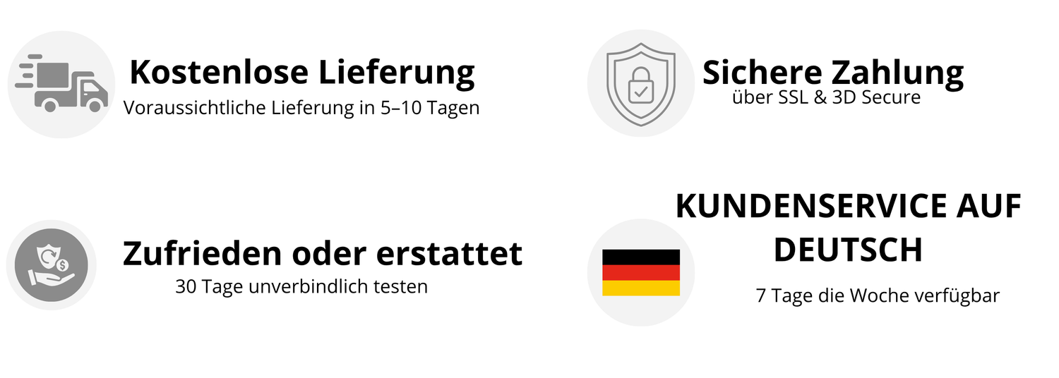 Alle Bestellungen werden mit einer Sendungsverfolgungsnummer versendet, sodass Sie Ihr Paket jederzeit nachverfolgen können. Sie erhalten eine Bestätigungs-E-Mail, sobald Ihr Paket unser Lager verlassen hat, inklusive aller Lieferinformationen.